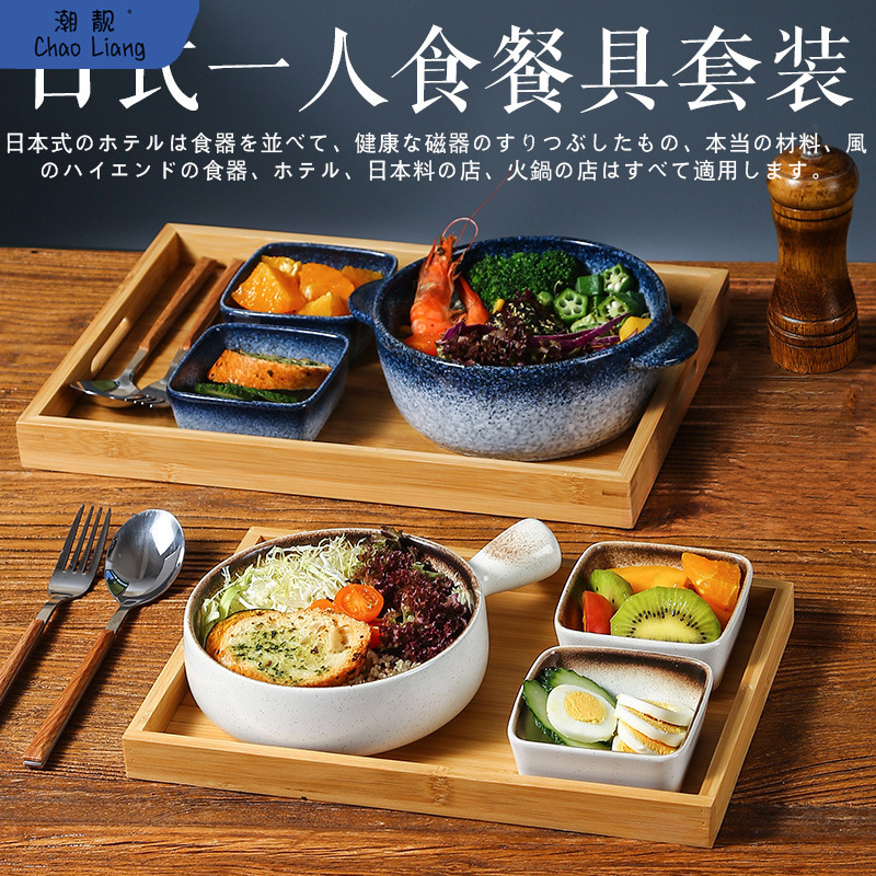 日本式朝食減脂定食一人食食器トレイ付きサラダボウル箸皿セット麺ボウル家庭用小包