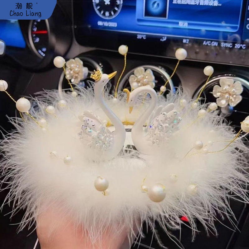 ネットの赤いカップルの白鳥の車の置物の女性の創意の自動車の上で中控台はドリルを入れて置物を飾って郵送します。
