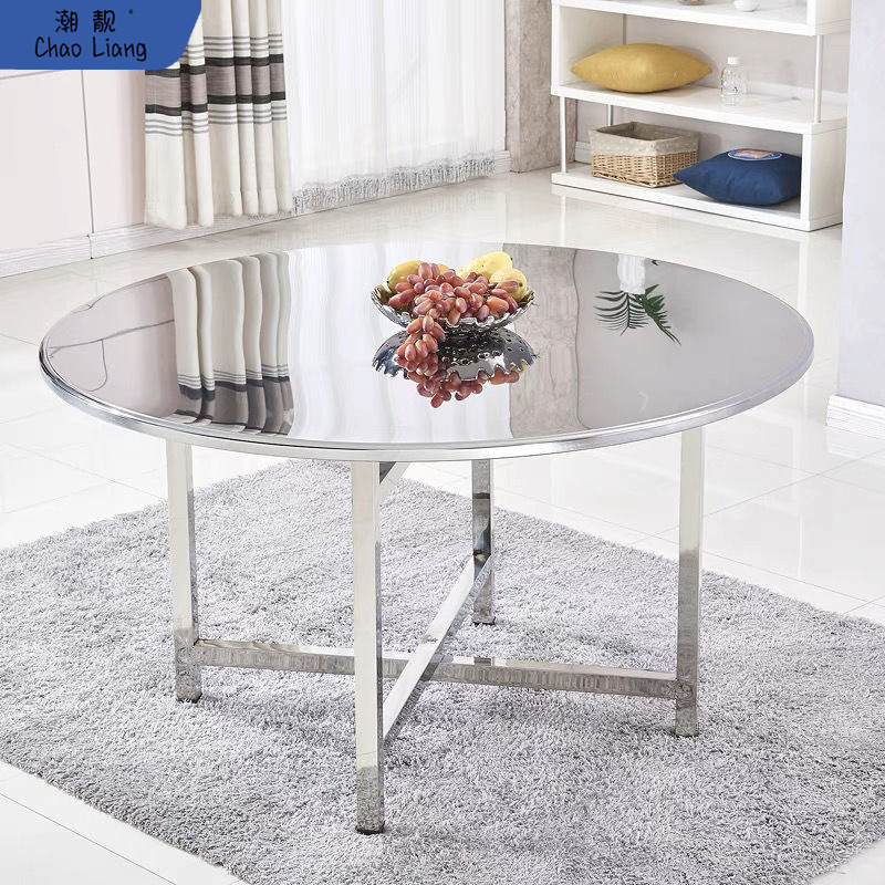 ステンレス製の円卓を厚くして家庭用10人円形の食卓の流水席ホテルで食事をするテーブルの折り畳みテーブルを包んで郵送する