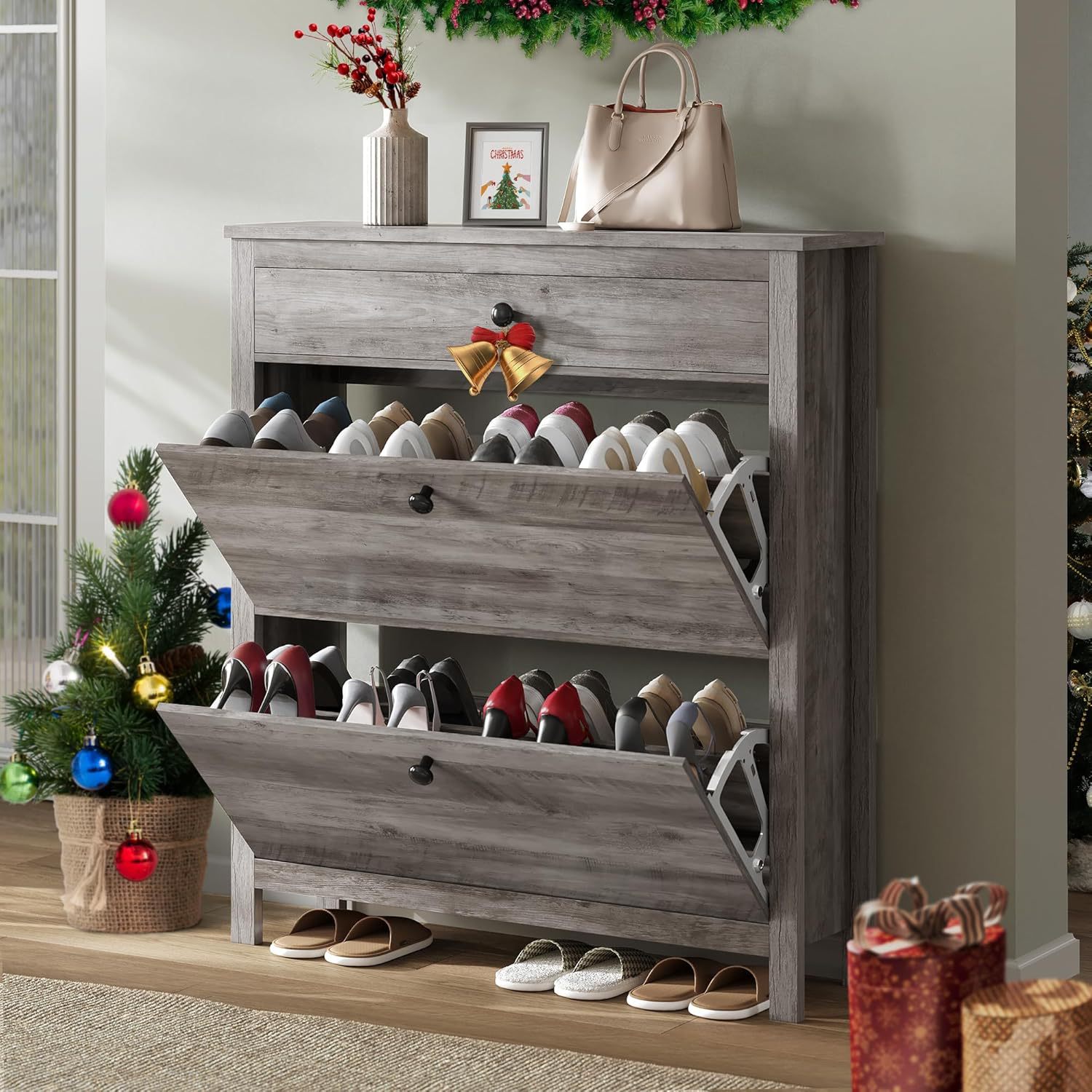 DWVO Shoe Cabinet with 2 FlipドラワースリムシューストレージCabin