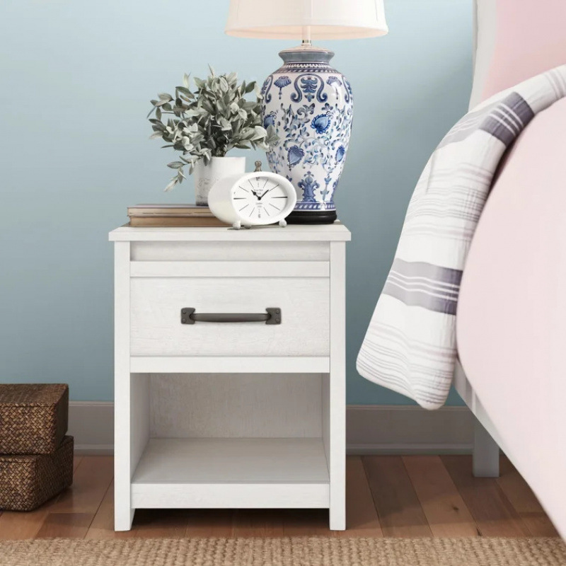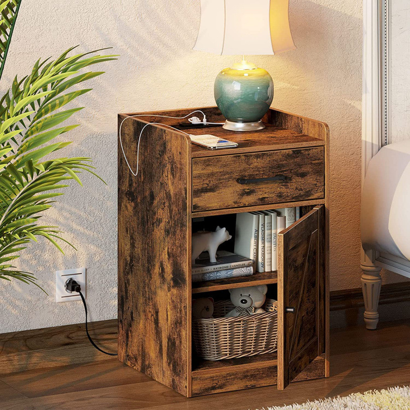 国境を越えて対外貿易専用の木製ベッドの頭箱引き出し付き現代ベッドサイドテーブル収納棚工場