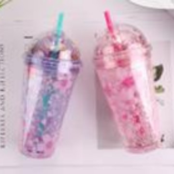 韩版樱花碎冰杯少女心学生潮流吸管随手背ins可爱夏日水杯