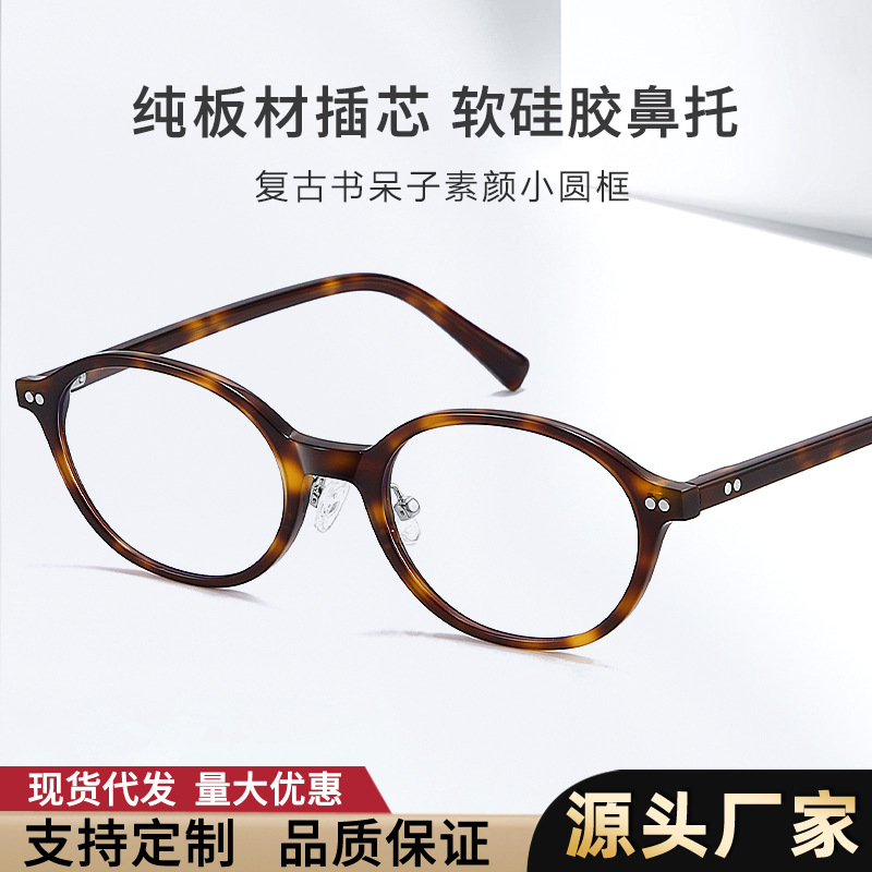 新しいレトロな楕円形のメガネフレーム女性用ハイエンド小型フレーム近視プレーンブルーライト防止オタクフラットメガネ