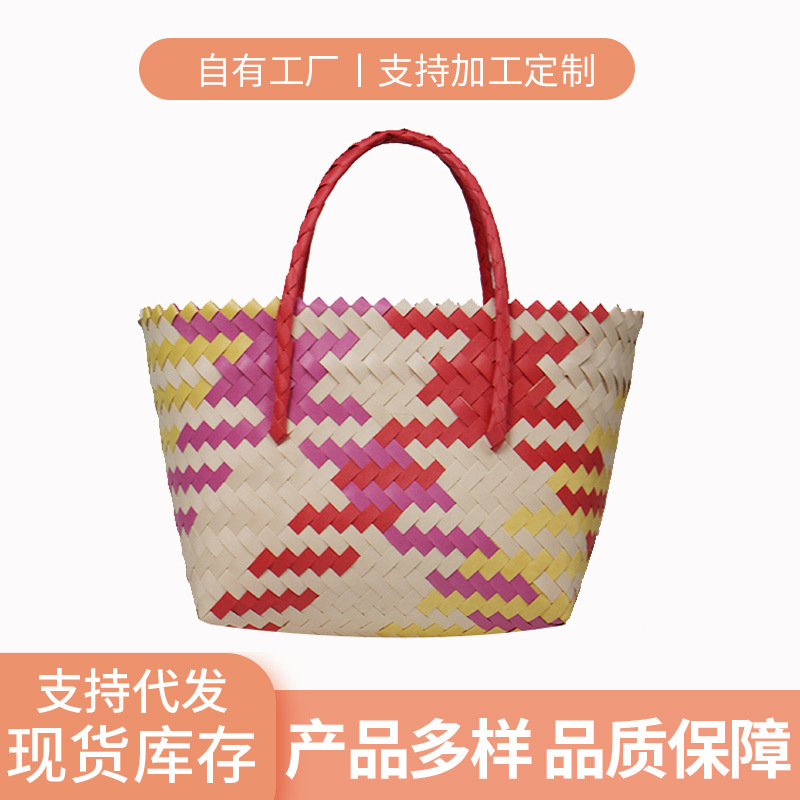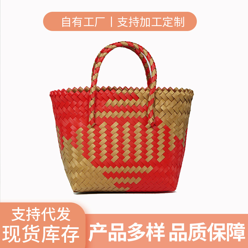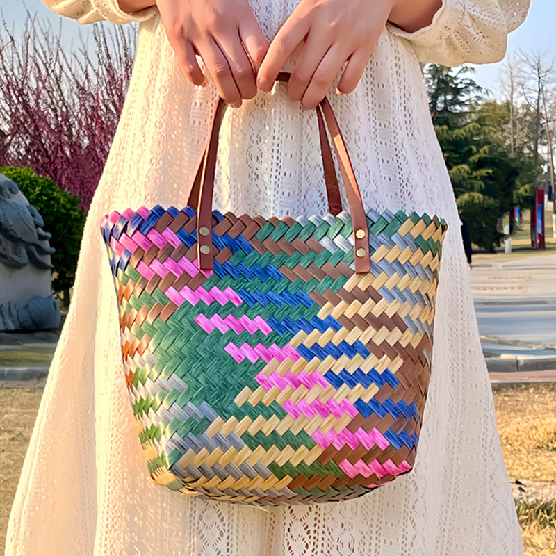 PUハンドル6色織りバッグキャベツバスケット大容量バッグハンドバッグお土産シーサイドビーチバッグインバスケット