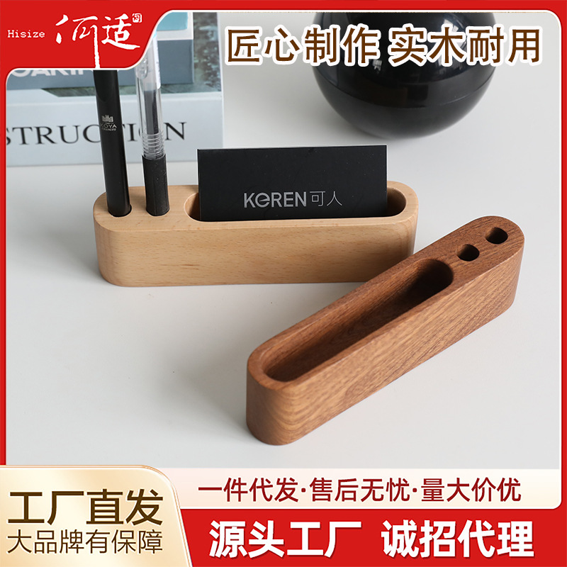 現物はLOGO烏檀木の名刺座の木製のペンを持ってデスクトップのカードの台の卸売りの名刺の棚を挿して台を並べます。