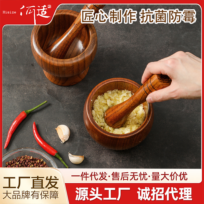 何適の家のニンニクの器はニンニクの神器のニンニクの泥の器の手動のニンニクの鉢のニンニクの実木の木製のニンニクの器の家庭用を取り除きます。