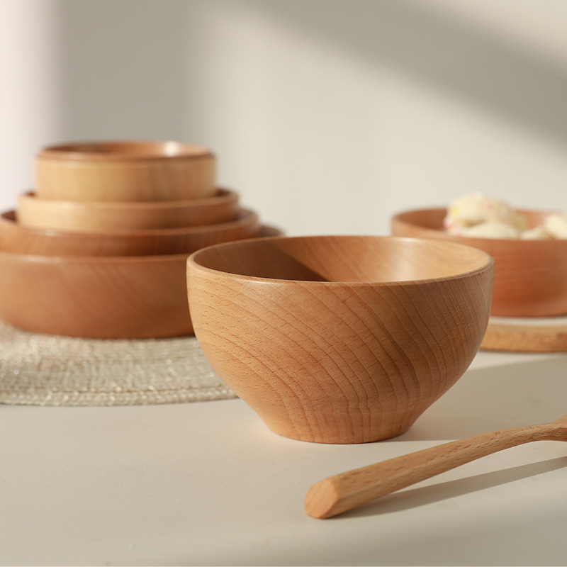 日韓風は同じ種類のケヤキの取っ手のサラダの碗の木製のカップラーメンのキムチの果物の碗を食べて水の瓢箪の木の碗をすることができます。