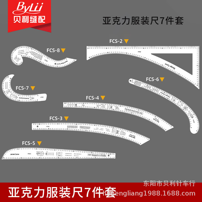 アクリル服装尺7点セット設計製版尺打版尺裁断尺曲線弧線直尺