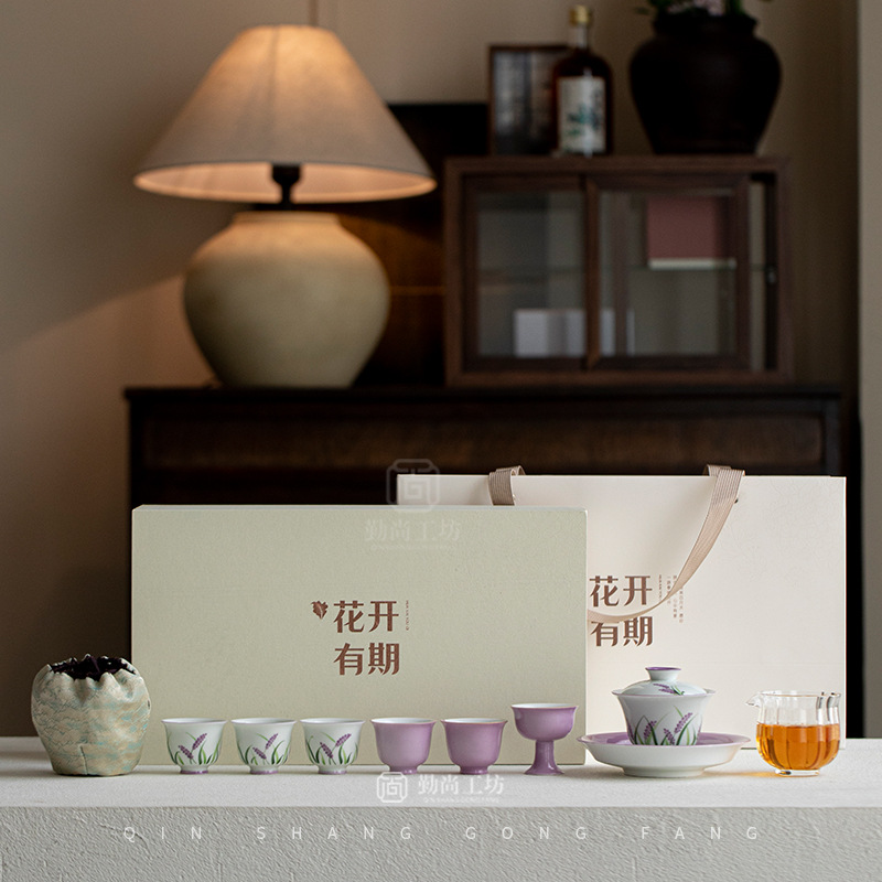花は咲く時期がある手描きラベンダーセラミックカンフーティーセットカバーボウルセットギフトボックスセットホリデービジネスギフト