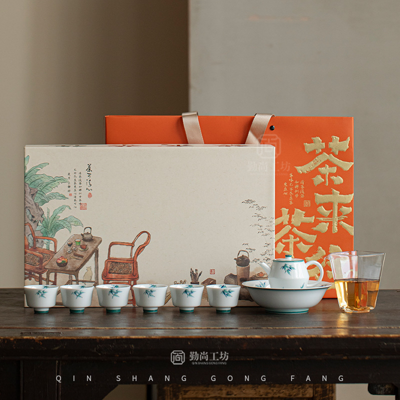 Tea to Tea 手描き青竹セラミックカンフーティーセット カバーボウルセット ギフトボックス ビジネスティーセット ギフトセット