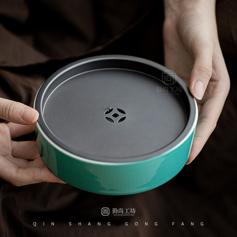 ターコイズグリーン釉二層ポット水貯蔵ティートレイカンフーティーセットカラー釉セラミックカンフーティーセットアクセサリードライバブルトレイ