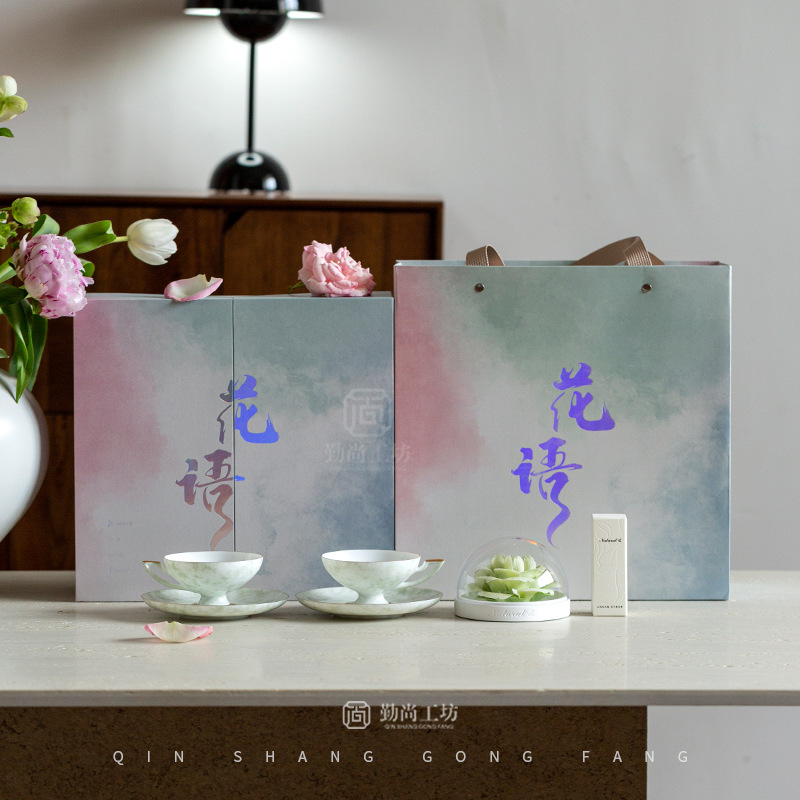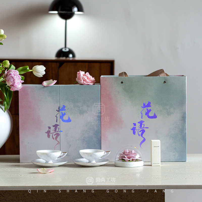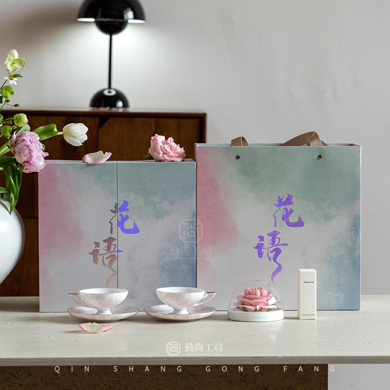 花の言葉グラデーションカラーセラミックコーヒーカップティーカップペアティーセットギフト手作りアロマテラピーフラワーお土産ホリデーギフト