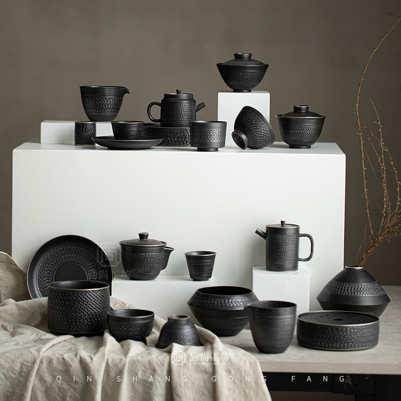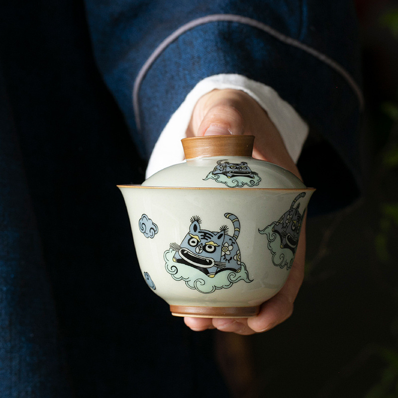中国風の虎蓋茶碗、茶碗、単一カンフー茶セット、陶器茶碗、手描きの密釉草木灰