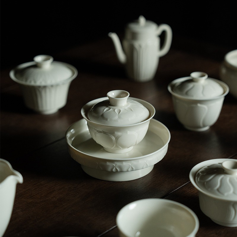 宋定窯白陶磁器二才蓋碗ティーポット手作り浮き彫り工夫茶器ティーポット品茗杯主人杯