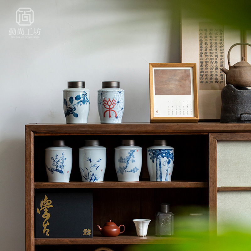手描き青花陶磁器茶葉缶単缶ギフトボックス岩茶通用茶葉包装空箱高級茶包装