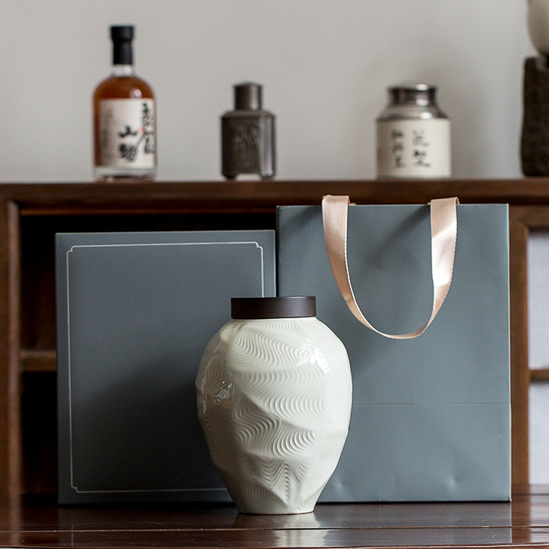 行雲缶陶磁器白銭銀針茶葉缶高級空茶葉包装ギフトボックス目が覚めた茶缶密封缶ギフトボックス