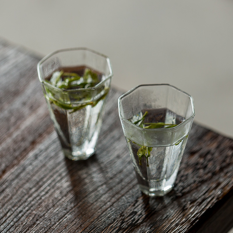 手作り八角形透明ガラス品茗杯家庭用耐熱緑茶カップシングルカップ主人カップ工夫茶器カップ
