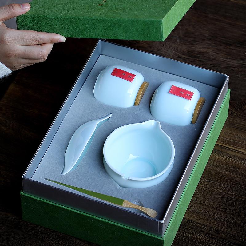 2023新型緑茶器陶磁器小茶缶密封缶陶磁器茶碗茶荷セット携帯旅行小セット