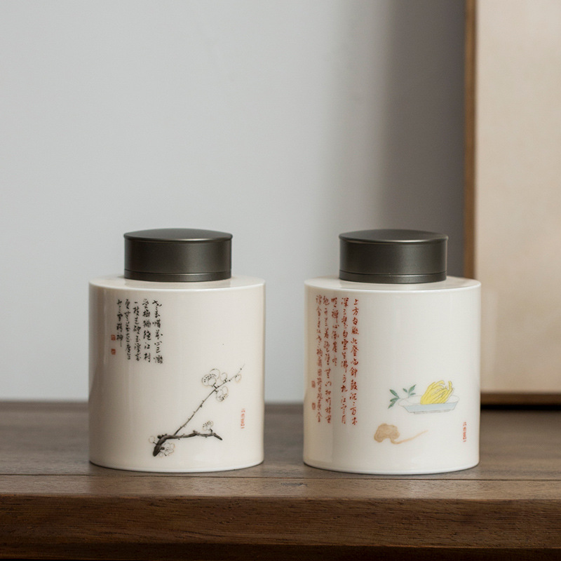 日本式陶磁器茶葉缶密封缶防湿収納家庭用貯蔵缶空缶携帯茶倉覚醒茶缶置物