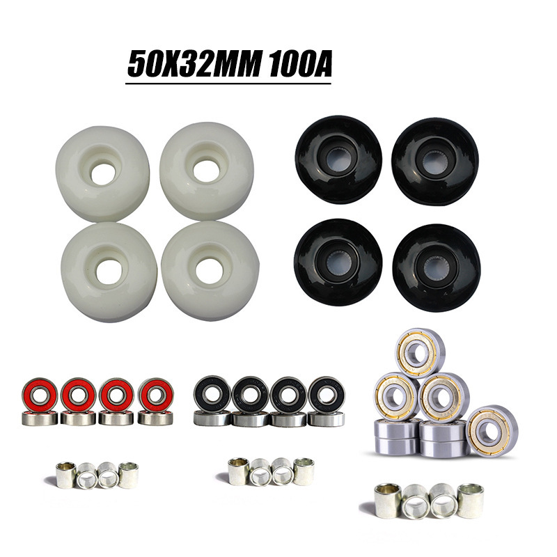 袋入り4粒50x32mm100aダブル反りスライドホイールpuホイール白ホイール炭素鋼ベアリングスリーブセット