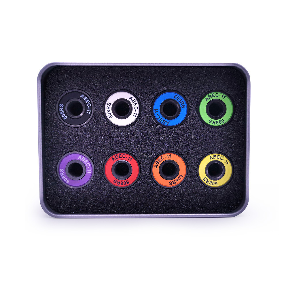 8pcsスケートボード急速ベアリングスケート靴ホイールスケート608rs鉄ボックスメッキ黒ABEC-11カラークロムスチール