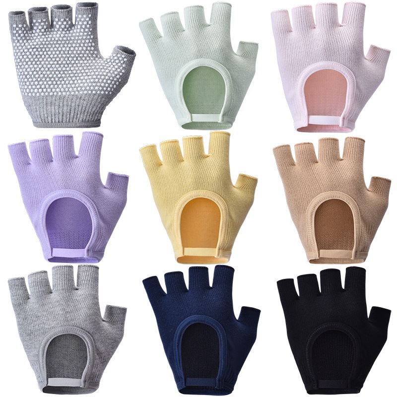 中性レディース露指露背保温五本指空中ヨガ手袋滑り止めヨガ補助用品ニット手袋
