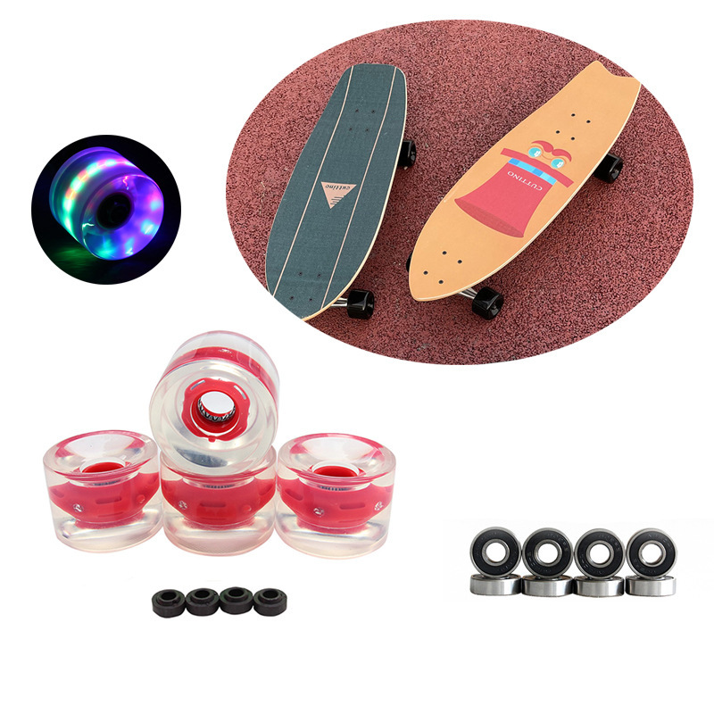 4つの三色フラッシュ70x51mm陸上サーフボードpuホイールled長板ホイールブラシ街のスケートボードホイールはベアリングを含みます。