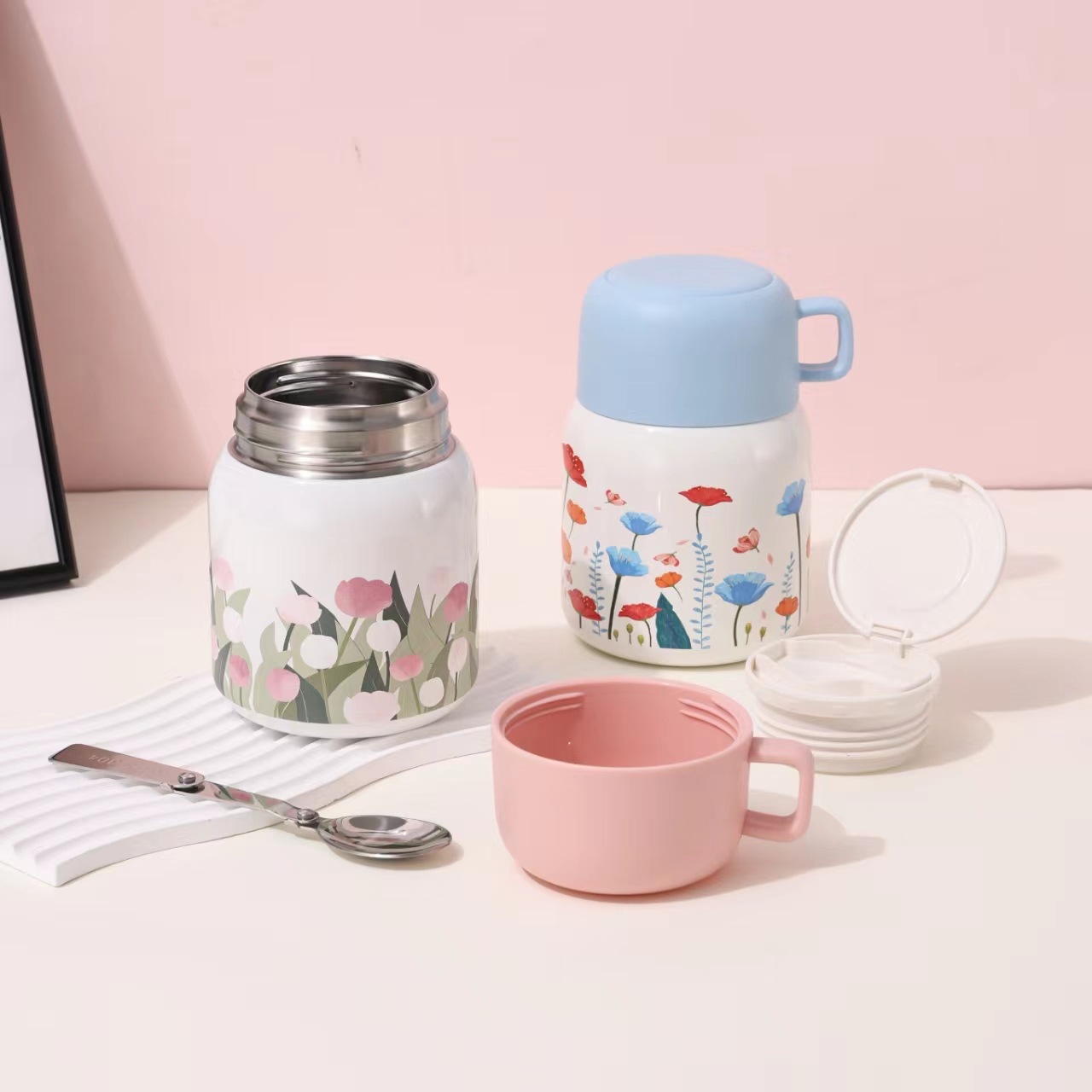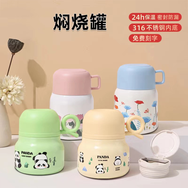 パンダ泡蒸し器316ステンレスかわいい女の子高颜値保温カップ二重カップ付きスプーン卸売り