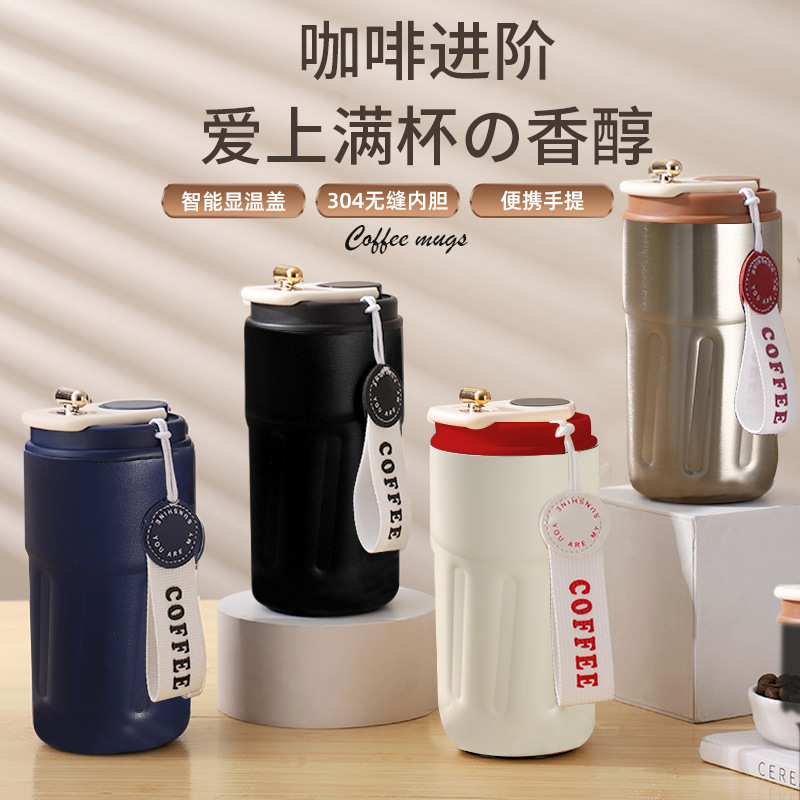 軽豪華高颜値304知能顕温ステンレス保温カップ家庭用屋外ロープ付き携帯コーヒーカップ