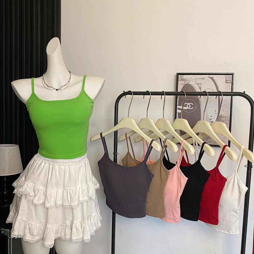 ZHISHENYA純色ストラップベスト女性は胸パッド固定カップ一体下着を持っています。