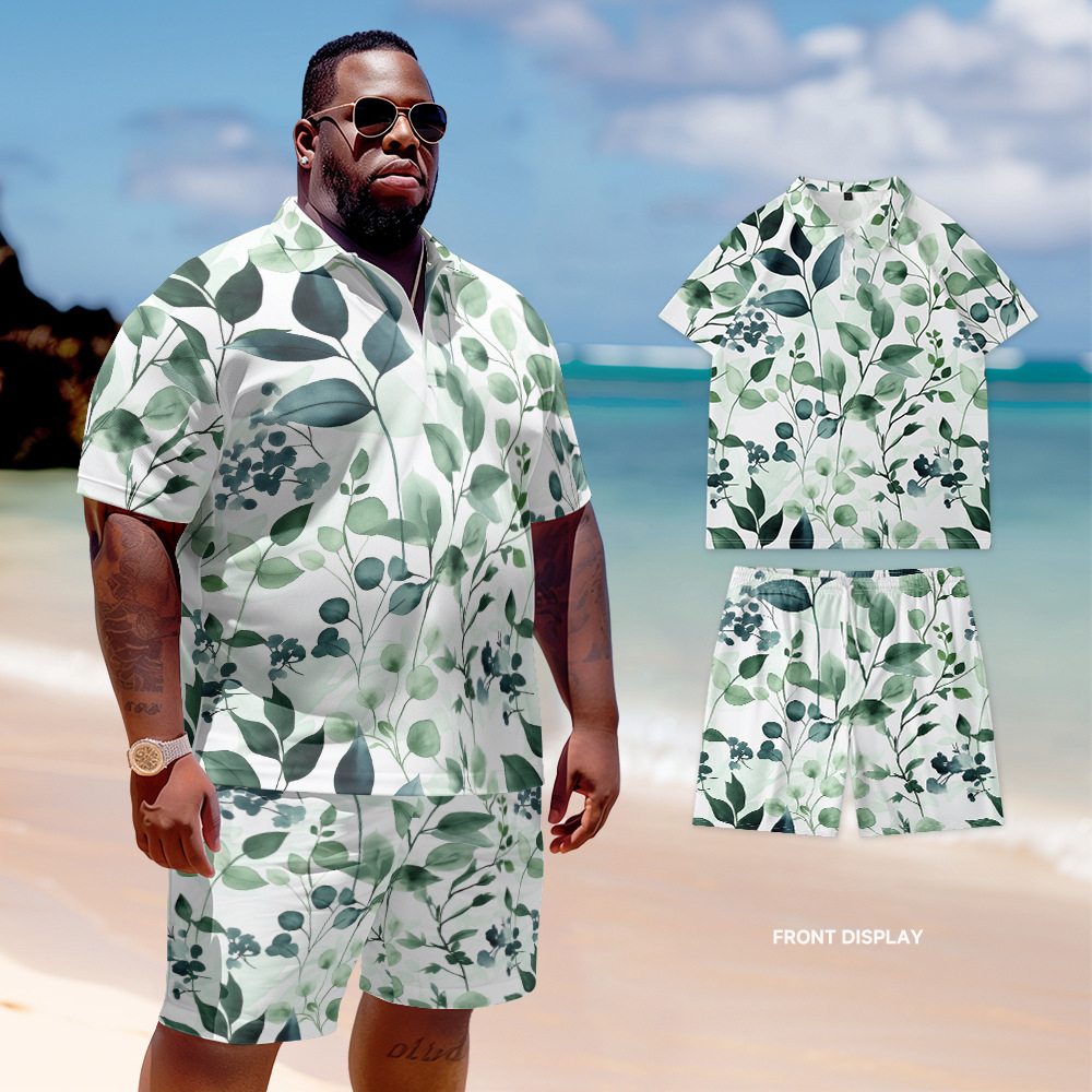 夏のプリントは大きいサイズの対外貿易のファッションのpoloシャツのスーツのゆったりしているカジュアルな半袖の半ズボンの大きいサイズの紳士服を合わせます。