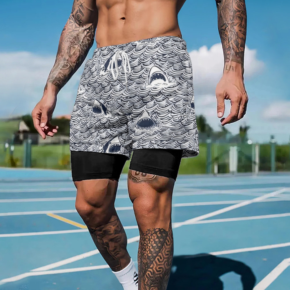 CP12004B78 クロスボーダーボーイズカジュアルスポーツビーチパンツ 3D デジタルプリント速乾性通気性偽ツーピースショーツ