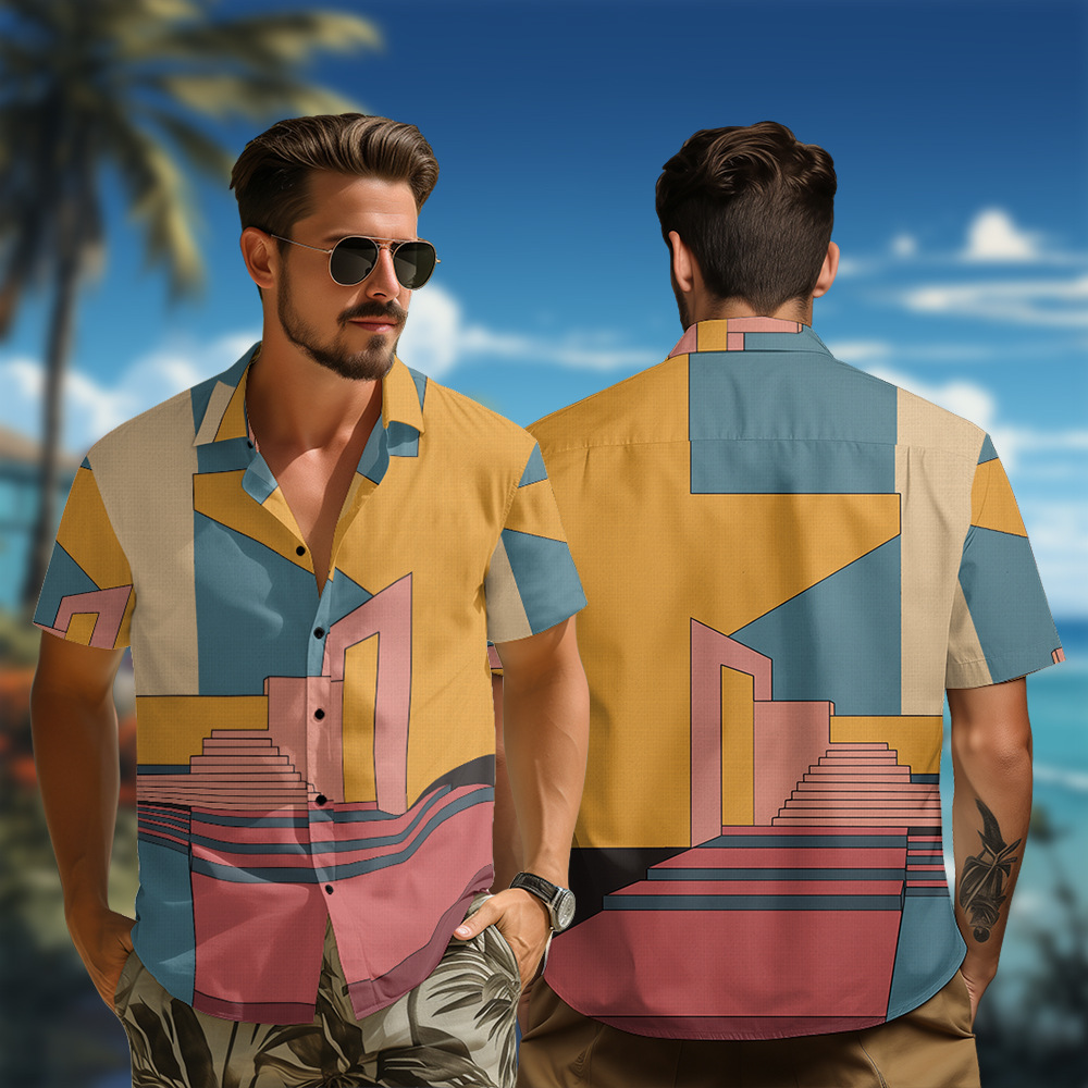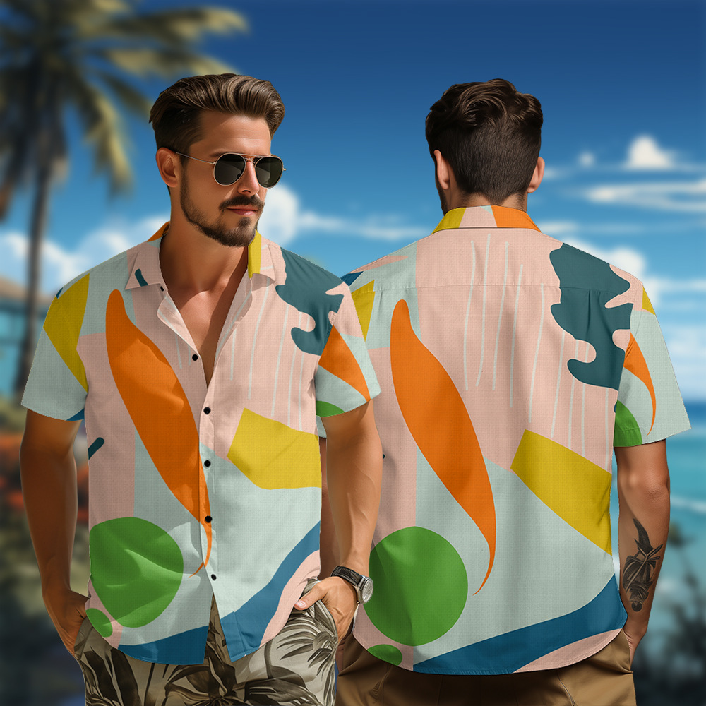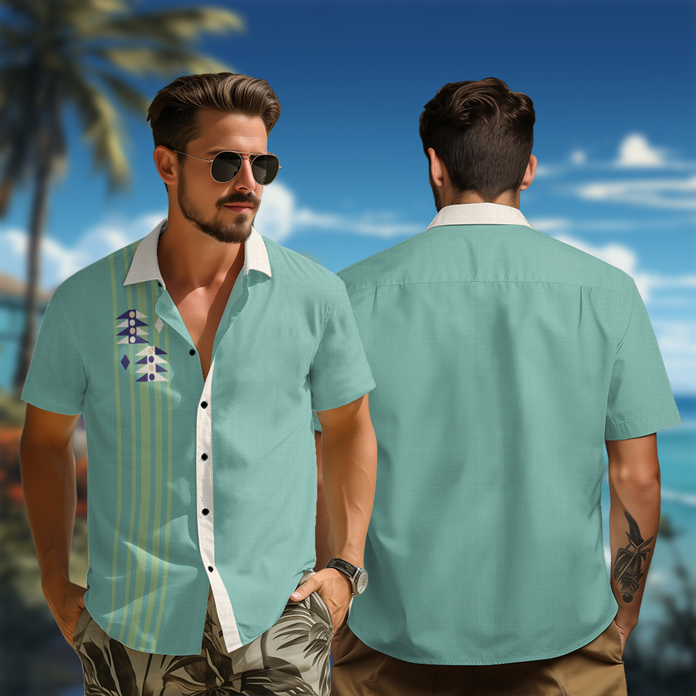 CP12085A20 外国貿易ヨーロッパとアメリカのクロスボーダーカジュアル半袖シャツカーディガンシャツハワイアンスタイル要素メンズリバーシング
