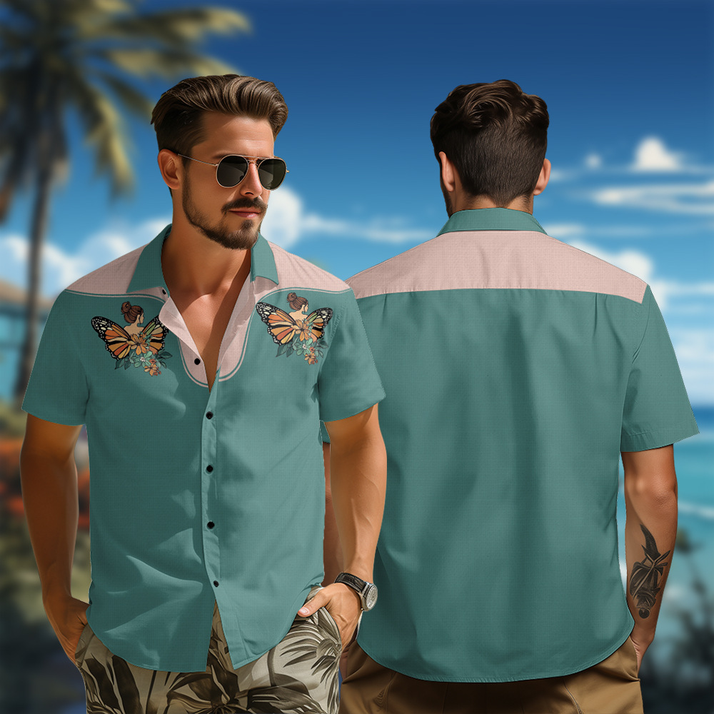 CP12100A11 外国貿易ヨーロッパとアメリカのクロスボーダーカジュアル半袖シャツカーディガンシャツハワイアンスタイル要素メンズリバーシング