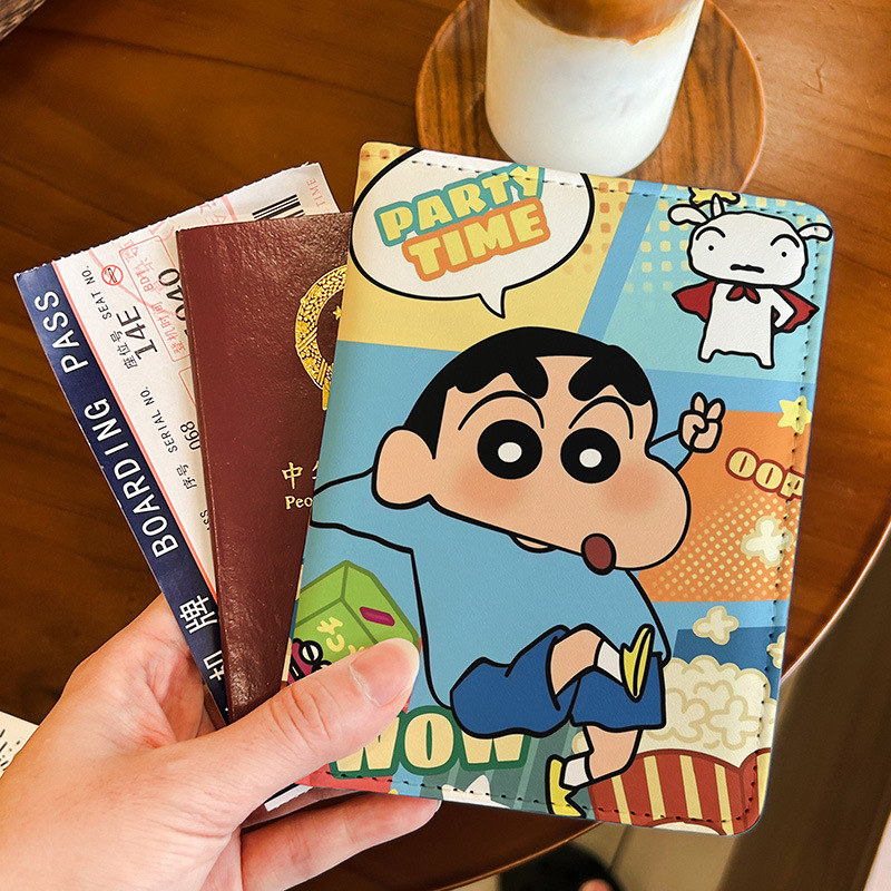 クレヨンしんちゃんpu皮海外パスポートカバーパスポート保護カバーパスポート収納バッグ旅行パスポートカバー