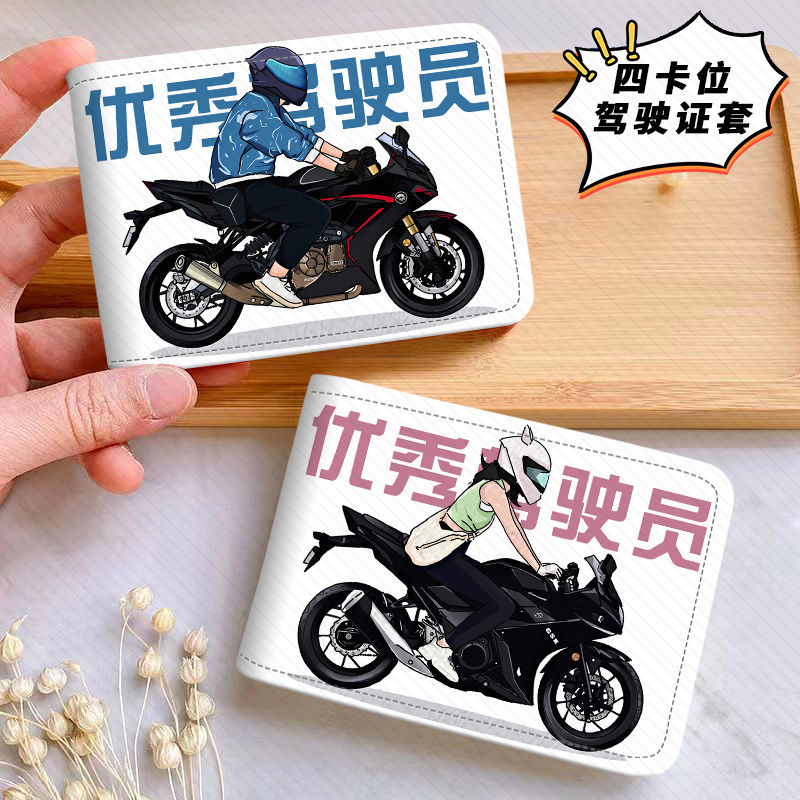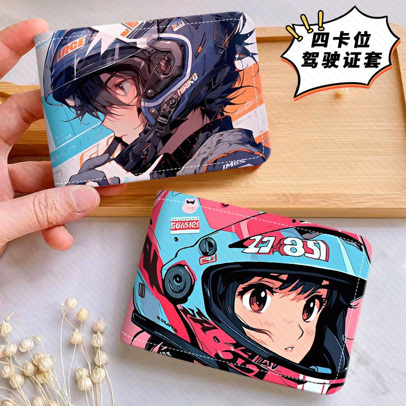 機関車男女ヘルメットカップル自動車運転免許証カバー走行証明書セット自動車運転免許証カバー二合一