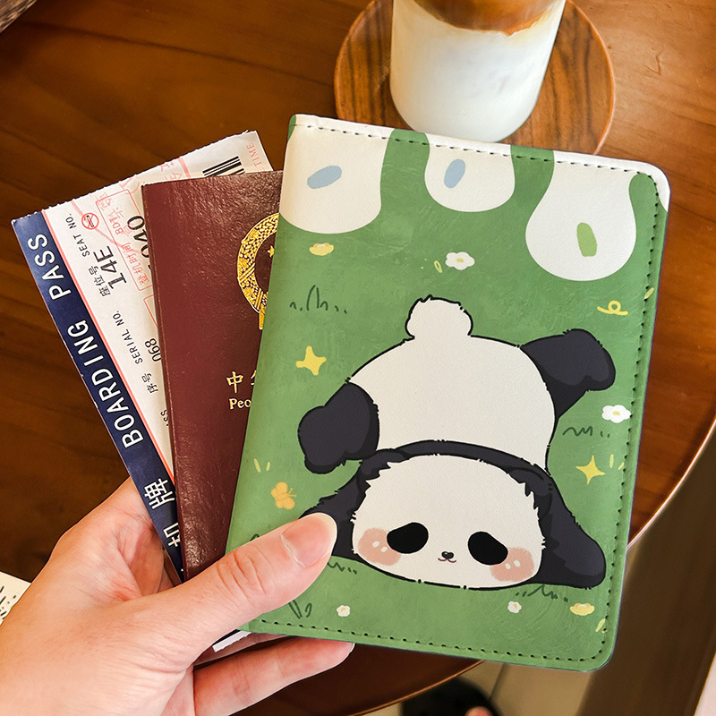パンダのかわいいパスポートホルダーの証明書の保護カバーの多機能カードは海外旅行の携帯して航空券を収納します。