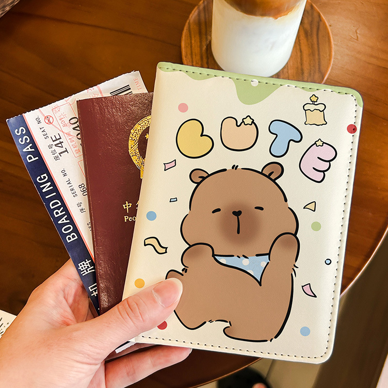 カピバラかわいいパスポートパスポートバッグ保護カバー多機能カードバッグ海外旅行携帯収納