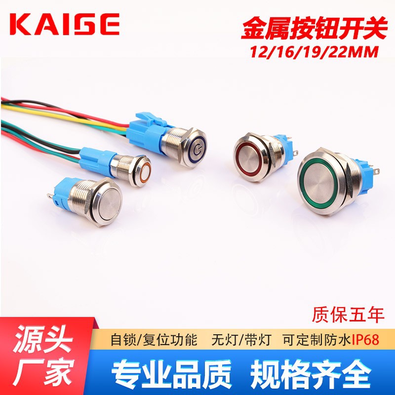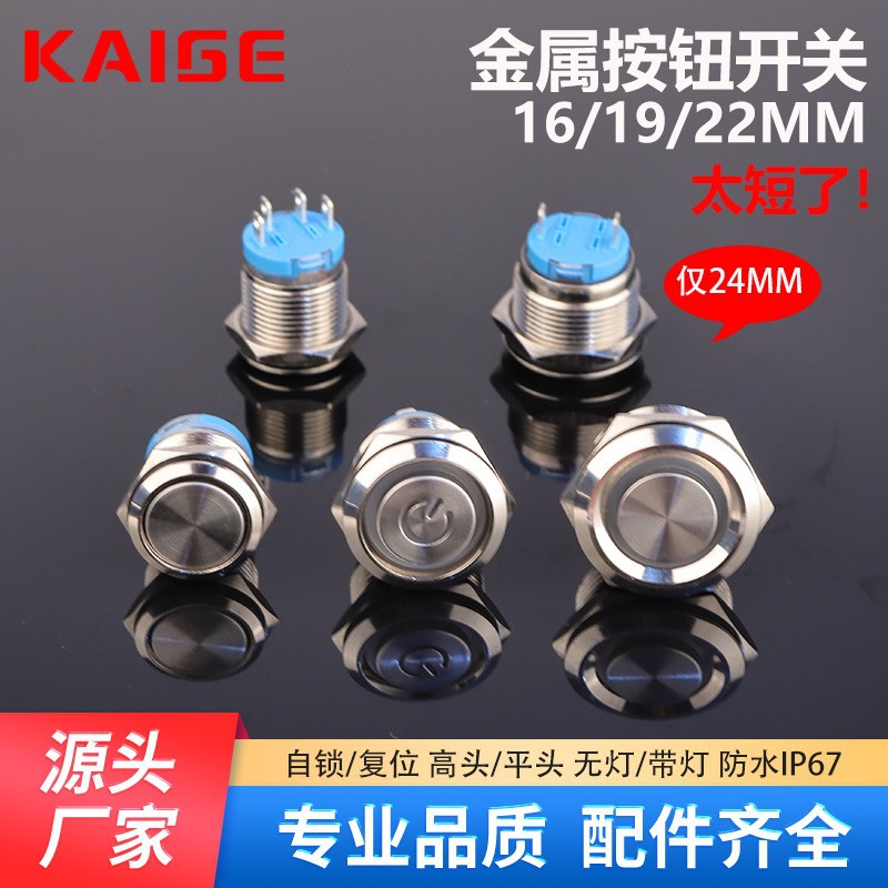 超短金属ボタンスイッチ16mm19mm22mmセルフロック防水IP67セルフリセット起動電源ボタン
