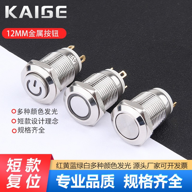 12mm金属ボタンスイッチランプ付き小型ボタンスイッチ高頭平頭リセットボタンスイッチメーカー卸売り