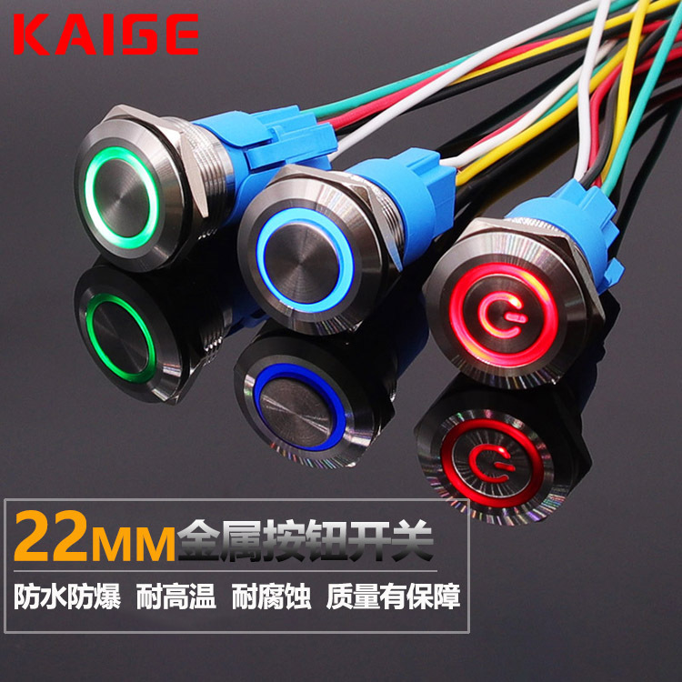防水セルフロック押しボタンスイッチ22mmリセットランプ付き電源起動金属ボタンスイッチ線付き12v220v