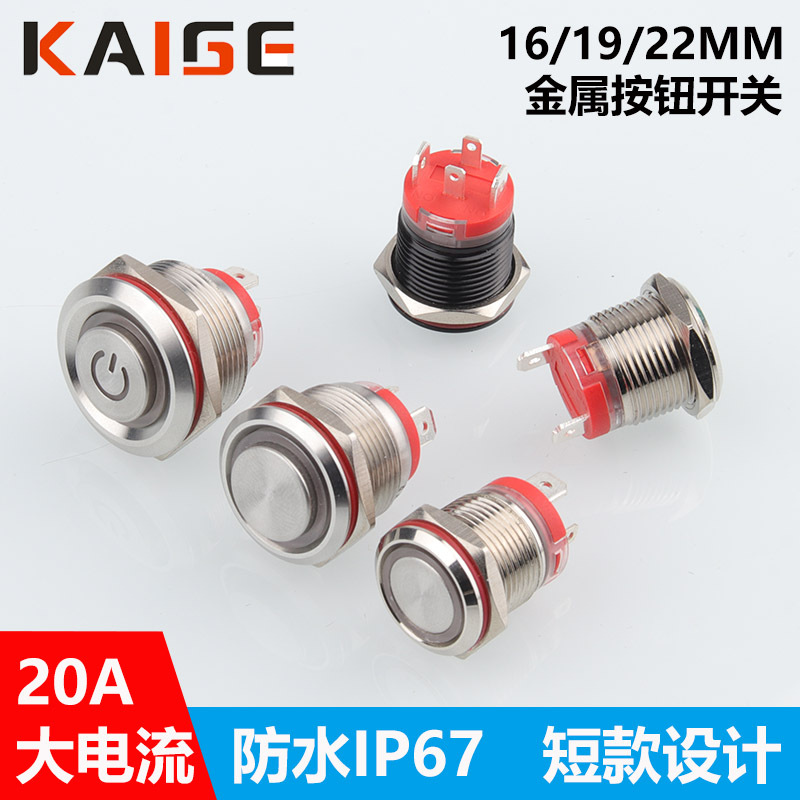 20a大電流16/19/22mm金属ボタンスイッチショートリセットセルフロックランプ付き防水電源スイッチ