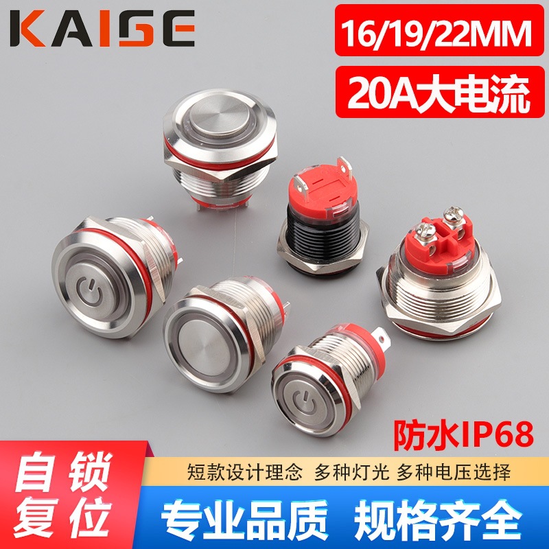 16/19/22mm大電流20a金属ボタンスイッチ防水ショートリセット自動ロック付きライトボタンスイッチ