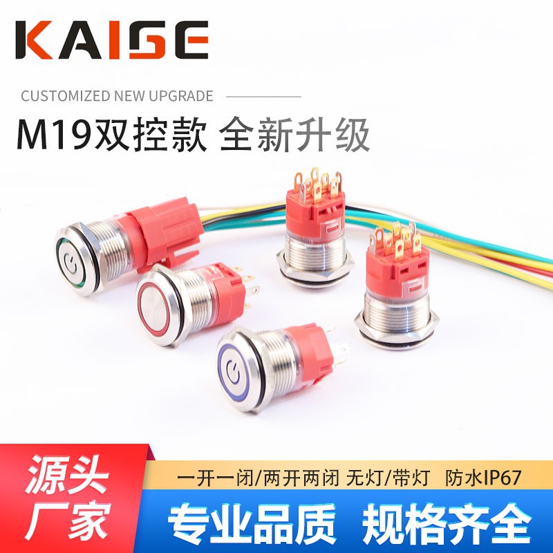 金属ボタンスイッチ19mmダブルコントロール2NO2NCセルフロック円形ランプ付き防水IP67電源セルフリセット
