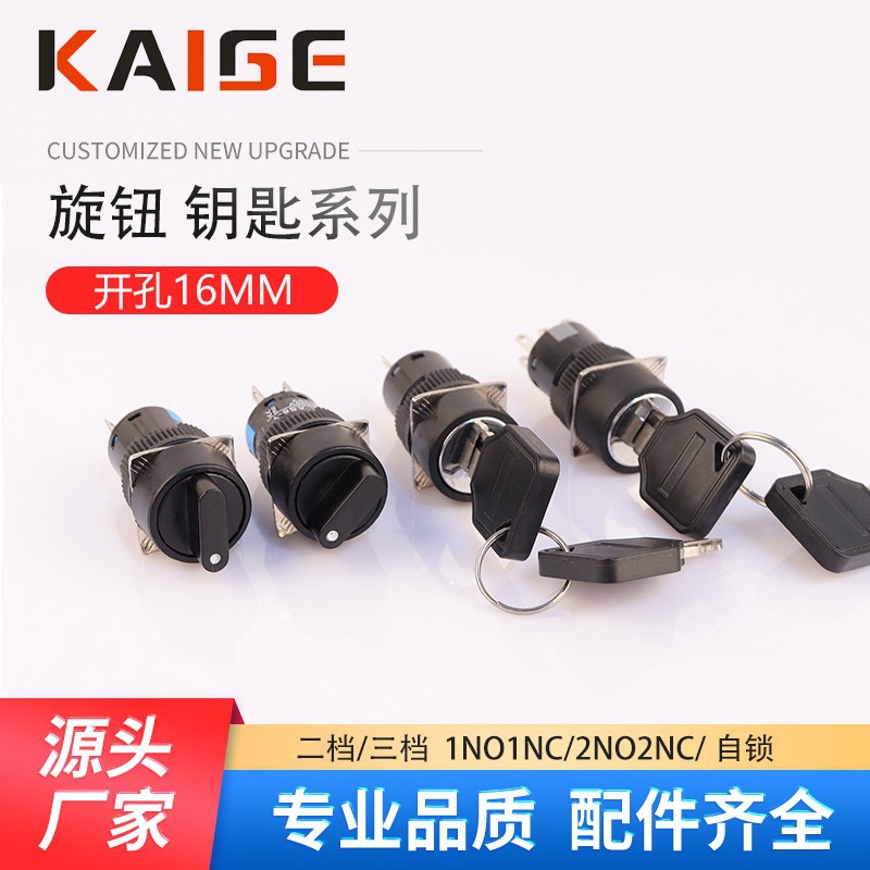 16mmノブ二速変換選択電源回転スイッチ三速LA16キー付きセルフロックノブ