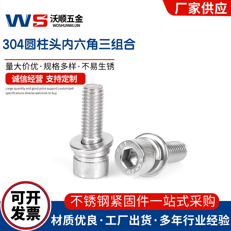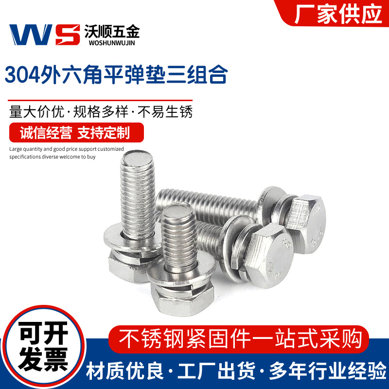 304ステンレス外六角平弾パッド組み合わせねじgb9074.17外六角三組み合わせM4-M12卸売り