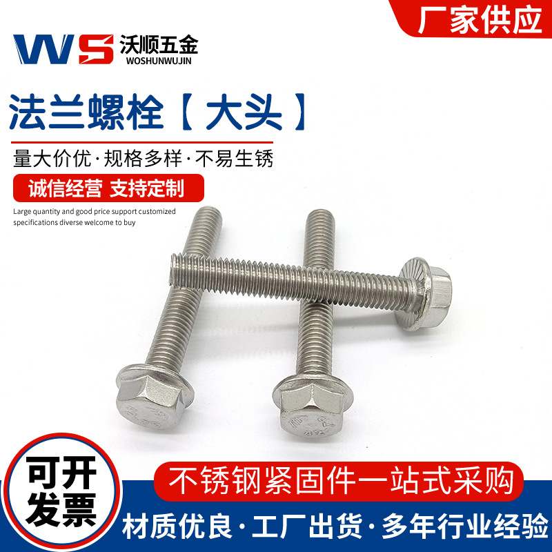 304ステンレス外六角フランジボルトgb5789六角ヘッドフランジ歯付き滑り止めねじM5-M12
