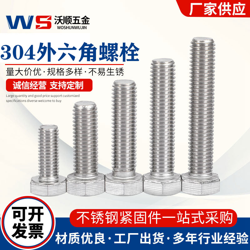 304ステンレス外六角ボルトdin933延長外六角ネジ全ねじ外六角M14-M30