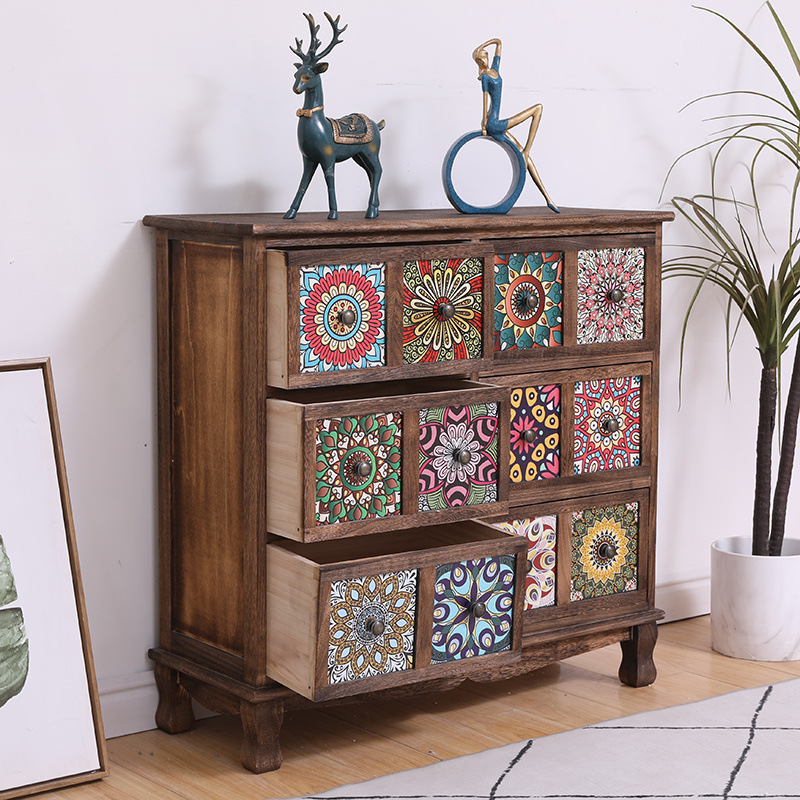 アメリカン無垢材レトロ収納キャビネット引き出し型収納キャビネットリビングルーム多層収納キャビネット寝室ダストキャビネットバルコニーキャビネット