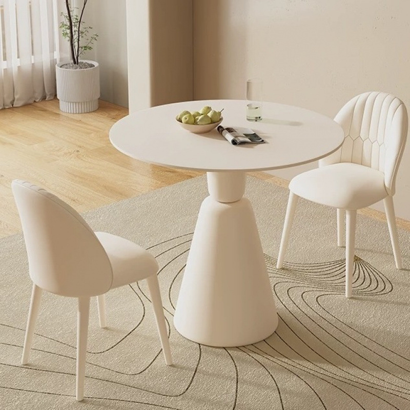 スレートラウンドダイニングテーブルライトラグジュアリーモダンシンプルカジュアルコーヒーレセプション交渉テーブル小さなアパートクリームスタイル小さなラウンドテーブル